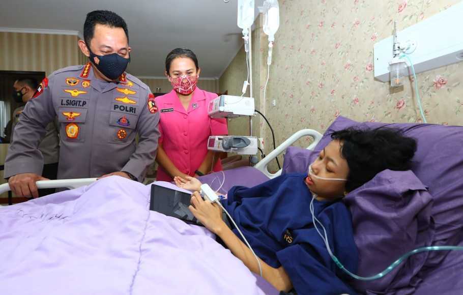 Sigit beserta istri sekaligus Ketua Umum Bhayangkari Juliati Sigit Prabowo, menjenguk Sinta Aulia untuk melihat kondisinya secara langsung saat menjalani perawatan di Rumah Sakit (RS) Polri, Kramat Jati, Jakarta Timur, Minggu (20/2/2022) dilansir beritasatu.com.